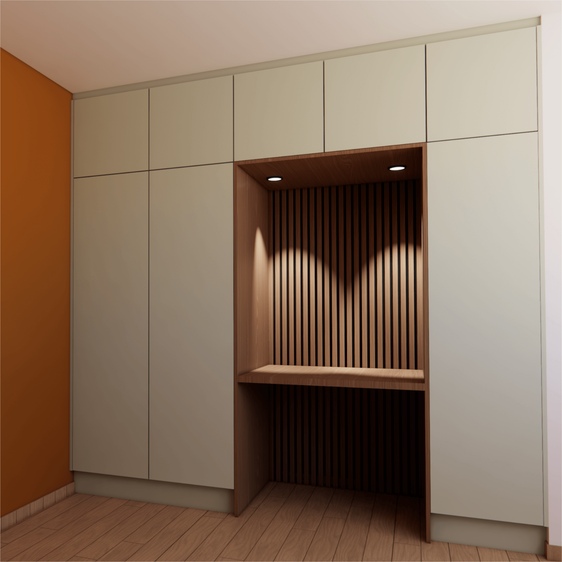 Apresentamos o projeto de carpintaria sob medida em 3D para que visualize exatamente como ficará o resultado final antes da produção. Esta visualização tridimensional permite ver em detalhe como os seus móveis personalizados, cozinhas sob medida, closets planejados ou estantes personalizadas ficarão no espaço, facilitando ajustes e aprovações.