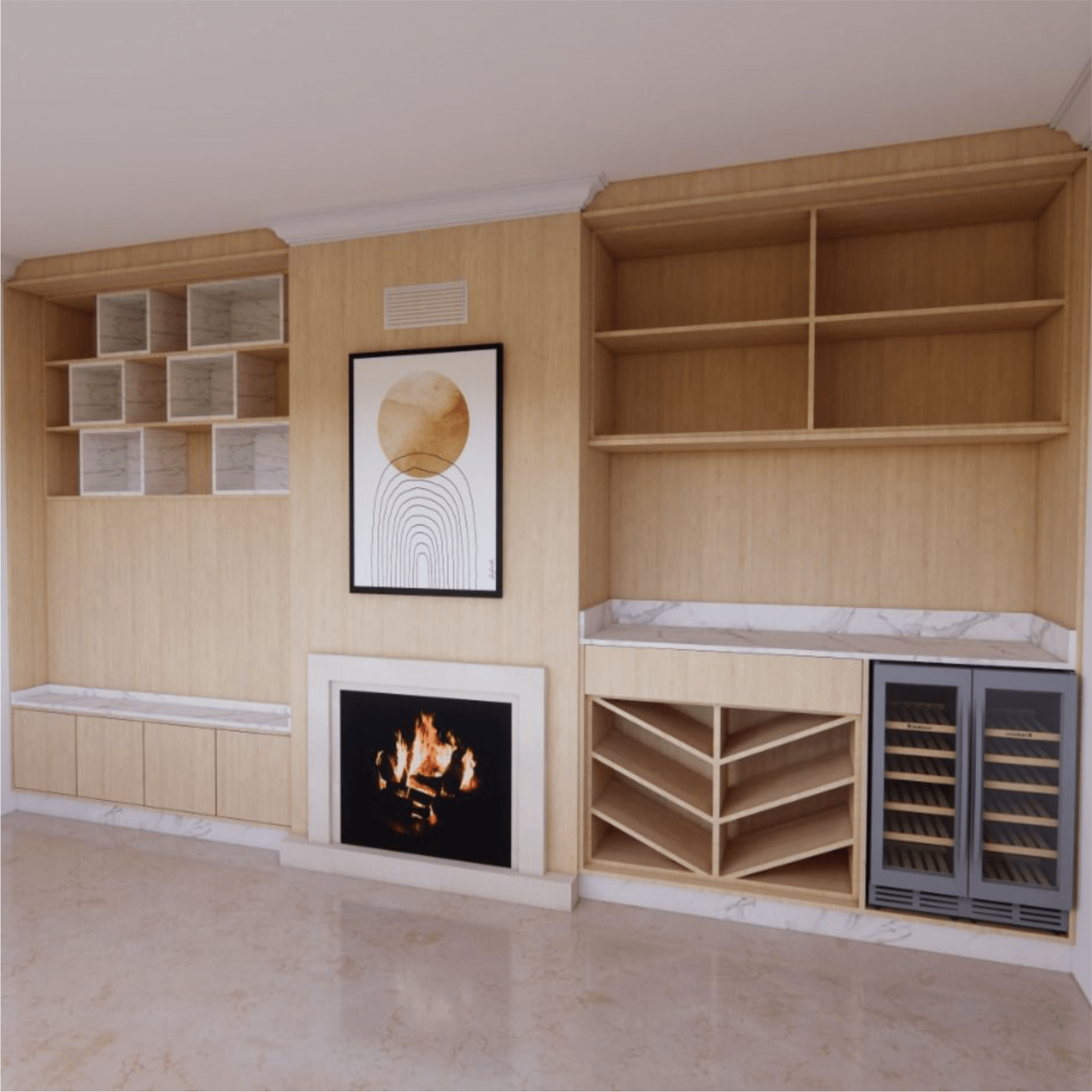 Acompanhamos o seu projeto em todas as fases: desde a primeira ideia e definição do conceito até ao desenvolvimento do desenho técnico, produção do mobiliário e instalação final no espaço, garantindo um resultado coerente, funcional e bem executado, pronto a usar.